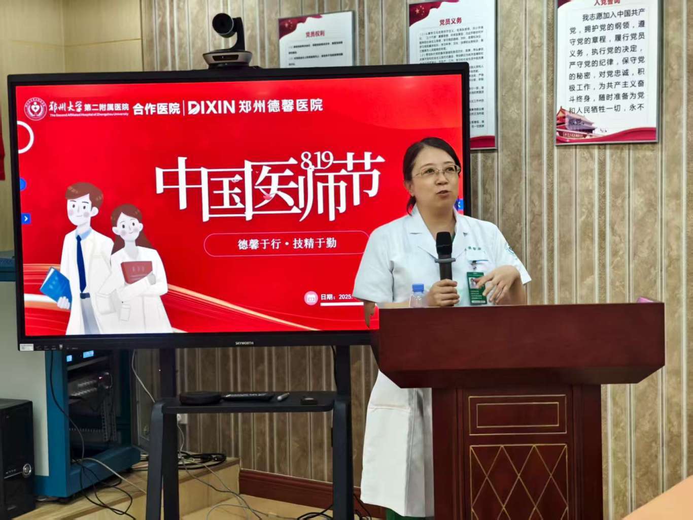 2025 年 8 月 19 日,在第八个中国医师节到来之际,郑州大学第二附属医院合作医院・郑州德馨医院以 “德馨于行,技精于勤” 为主题,精心策划系列活动,通过致敬一线医务工作者、强化职业承诺、重温医者誓言,全方位展现新时代医务工作者的责任担当。