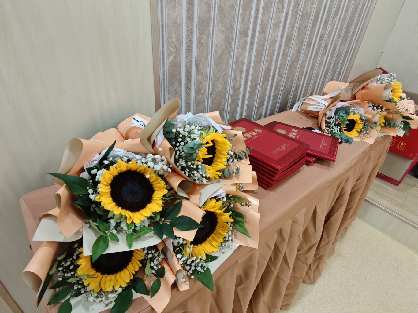 会议开始前,郑州德馨医院业务院长田晨光教授与医务科,向部分门诊、临床及医技科室,为坚守岗位的医生和医技人员送上象征敬意的鲜花与节日慰问品。